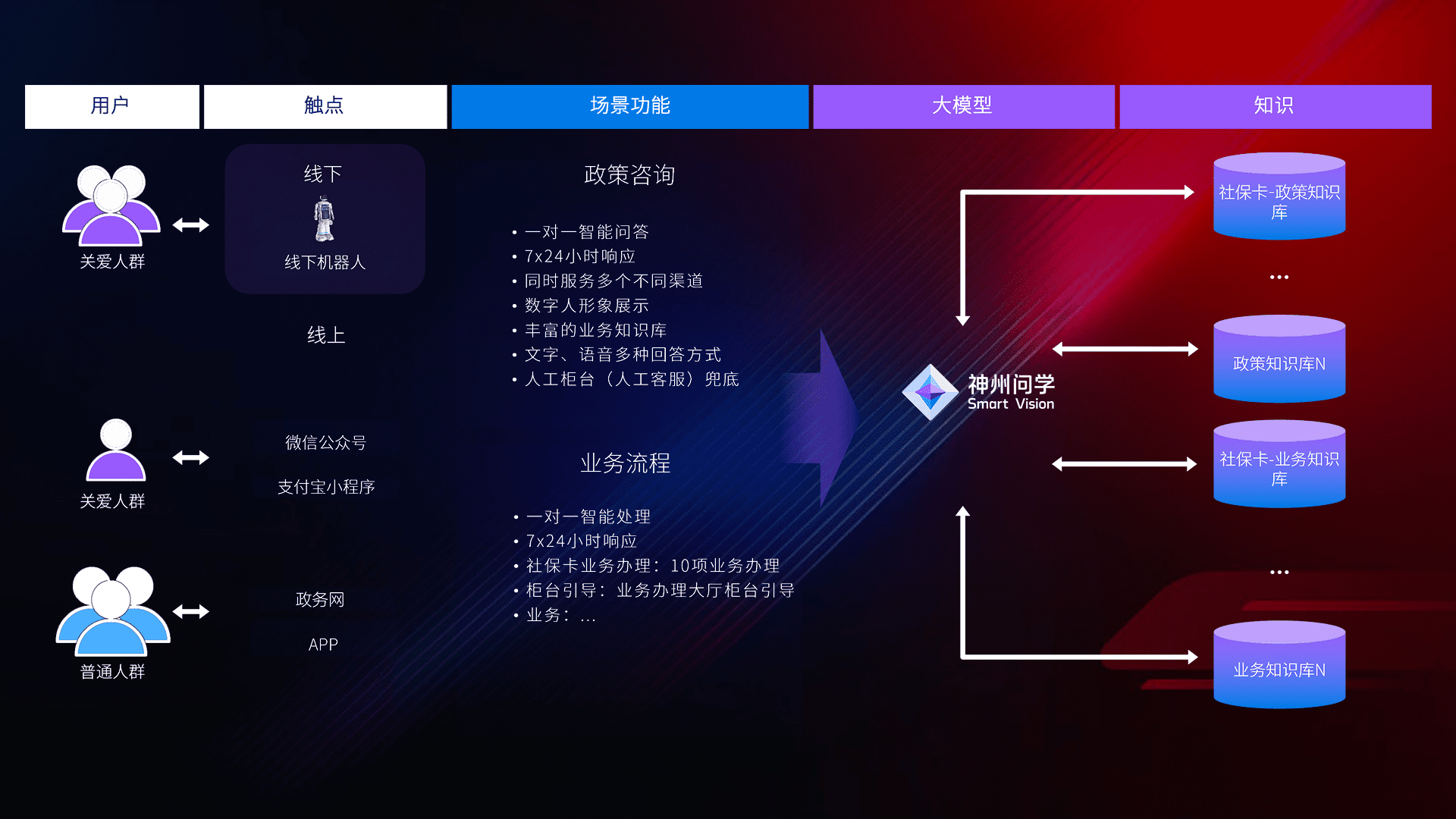 • 线上线下全覆盖:线上提供微信公众号、、、支付宝小程序、、、政务网、、app多种渠道,,与线下机器人形成完整服务体系。。